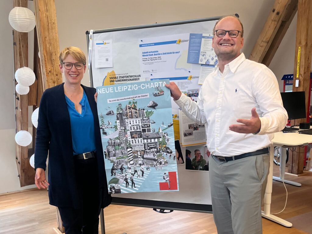 Publikation zur Neuen Leipzig-Charta: Zum fünfjährigen Jubiläum beleuchtet eine neue Broschüre die Impulse der Charta auf strategischer und operativer Ebene. Sven Fries erläutert in einem eigenen Beitrag, wie die Charta als Orientierungshilfe Ideale benennt, aber zugleich Zielkonflikte sichtbar macht. „Das ist gut so. Nur so entstehen Aushandlungsprozesse, Vernetzung und Zusammenarbeit und werden sozialraumorientierte Lösungen für die Praxis gesucht.“ Ein zentrales Thema auch beim Besuch der Staatssekretärin Andrea Lindlohr MdL in unserem Ostfilderner Büro.